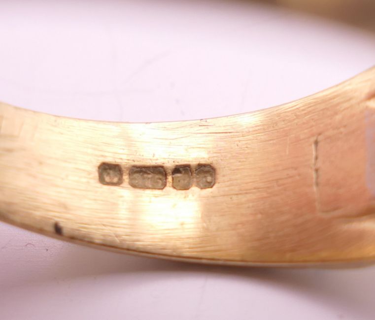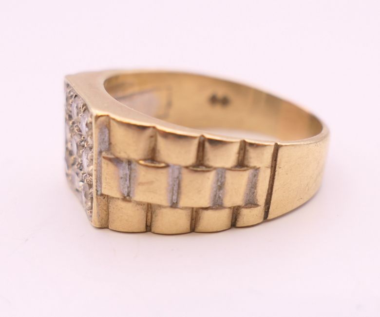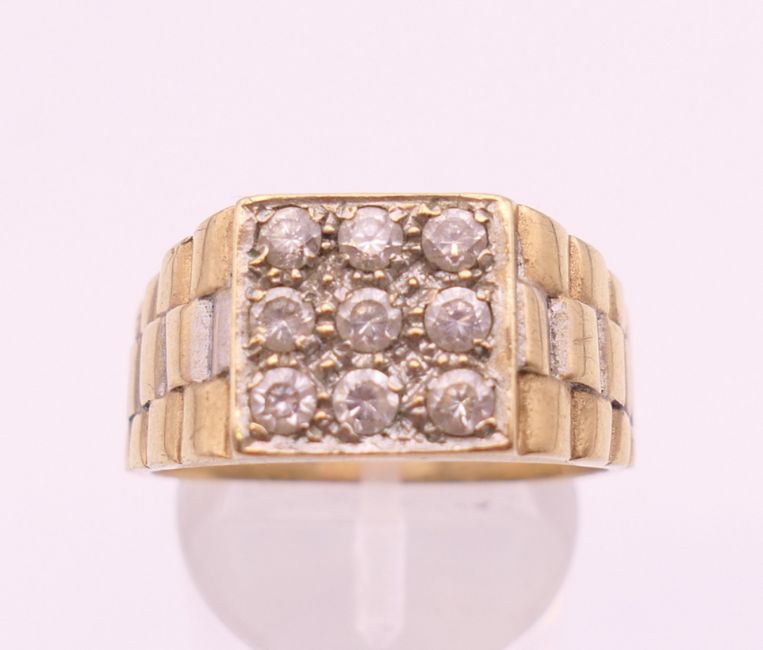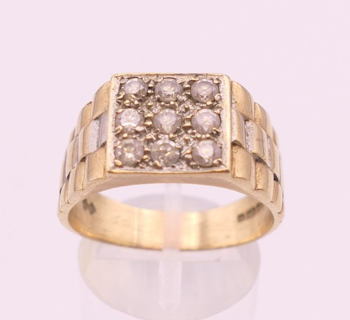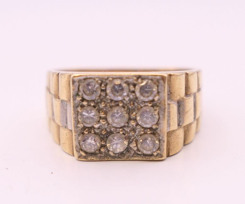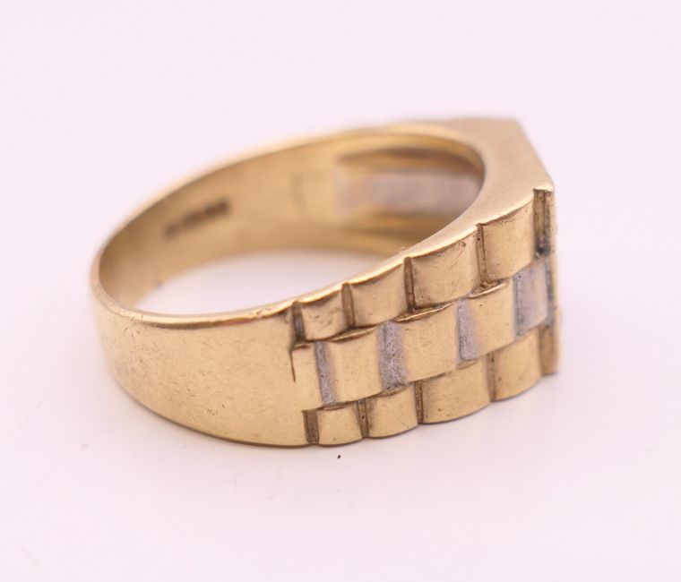 A 9 ct gold gentleman's ring. Ring size V. 7.3 grammes total weight.