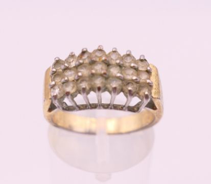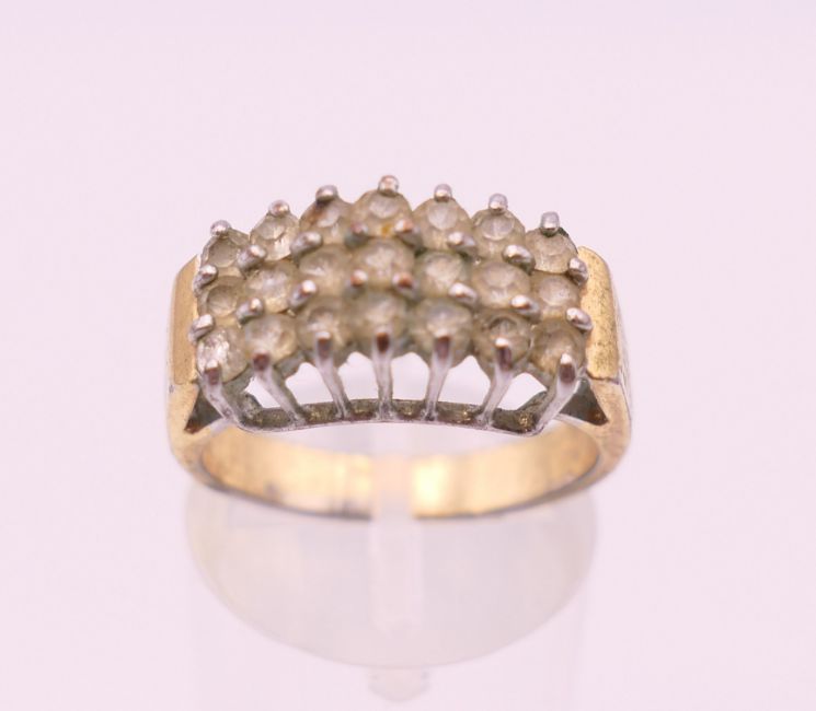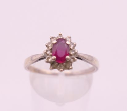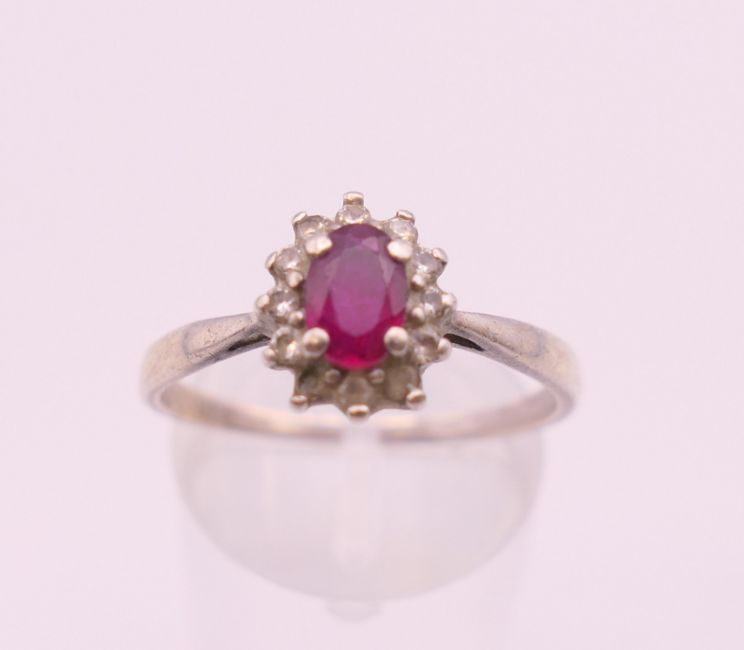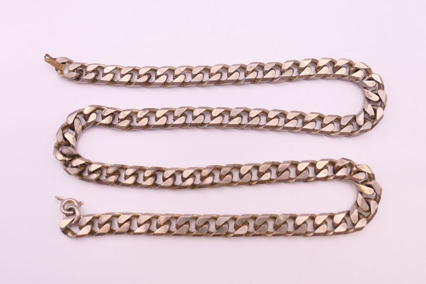A silver and cubic zirconia ring, another ring and a chain. Chain 47 cm long.