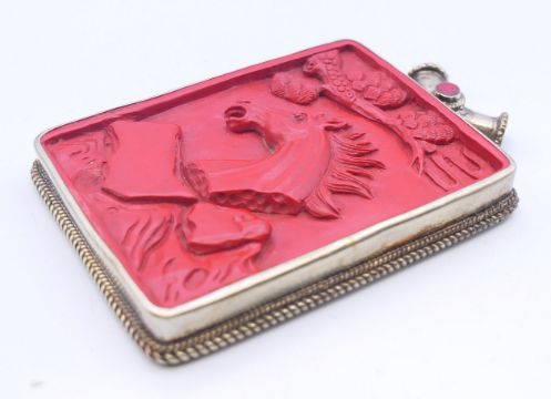 A Tibetan cinnabar horse pendant. 9.5 cm high.