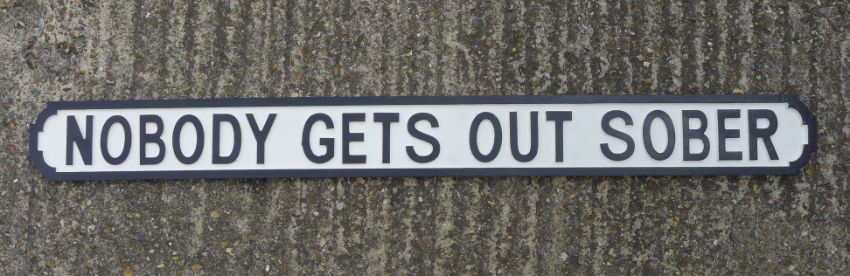 Nobody Gets Out Sober sign. 133.5 cm long.