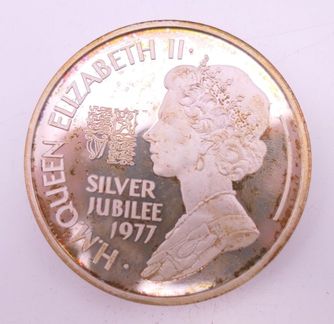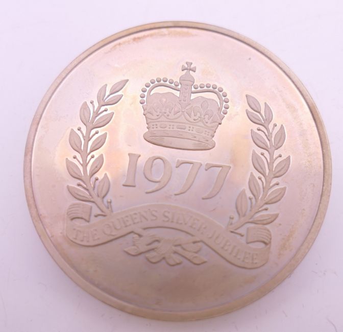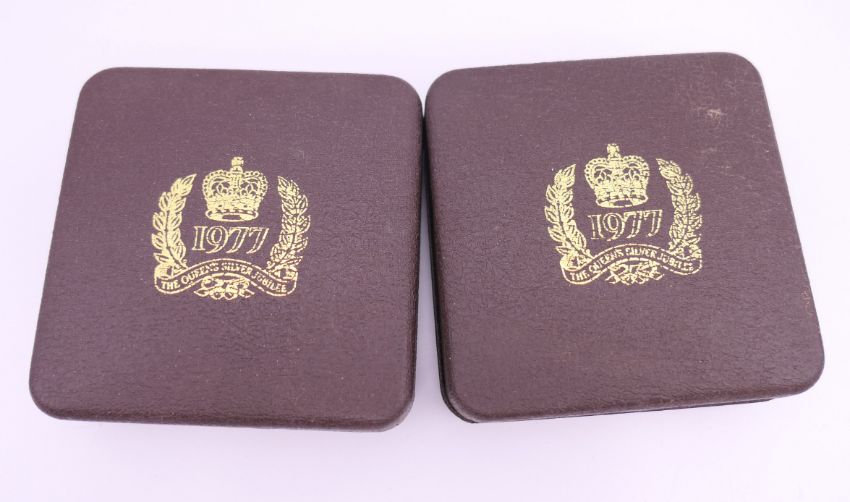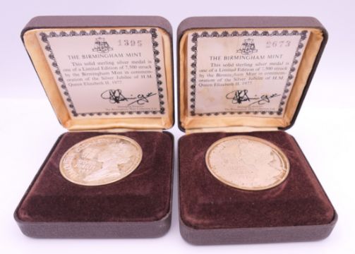 Two boxed Elizabeth II sterling silver Silver Jubilee commemorative medals.