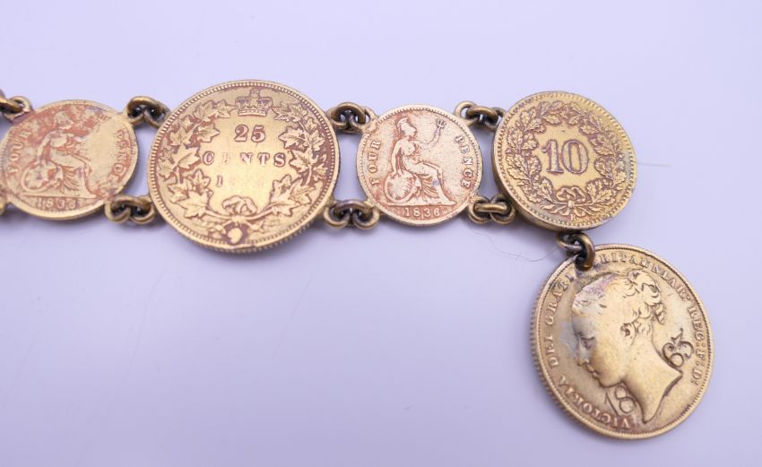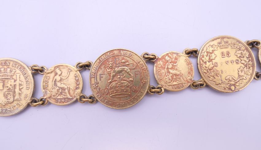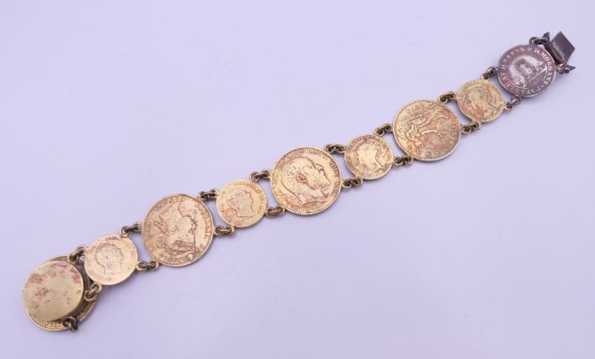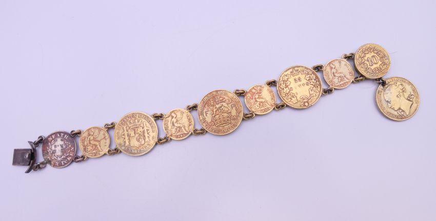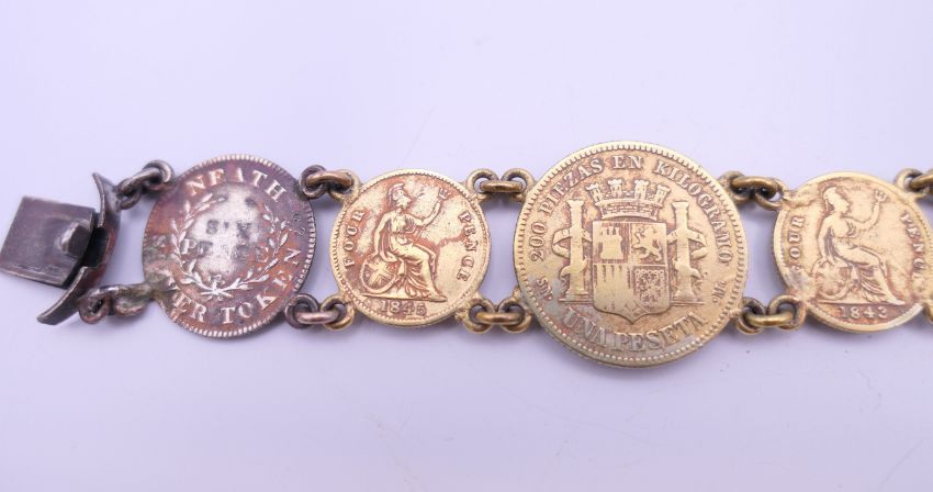 A bracelet formed with gilded coins. 20 cm long.
