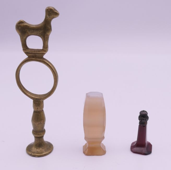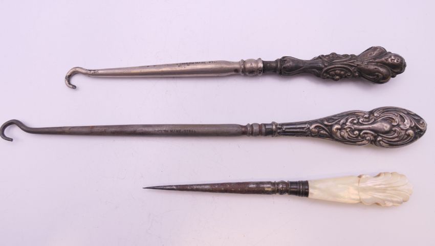 A quantity of miscellaneous items including button hooks, sewing stiletto, seals, etc.