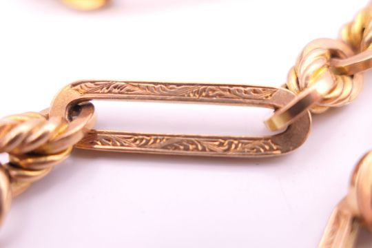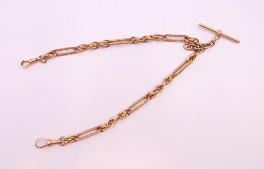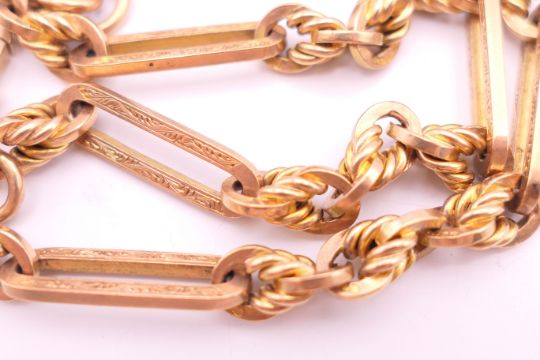 A 9 ct double Albert chain. 35 cm long. 48.3 grammes.