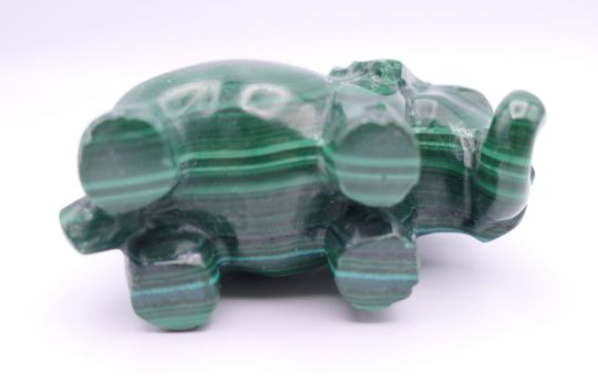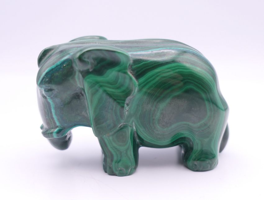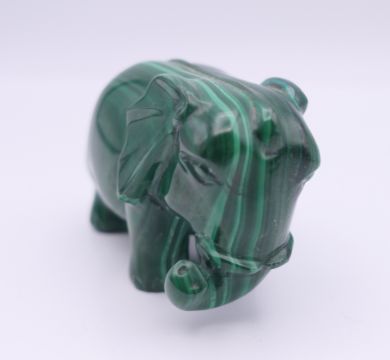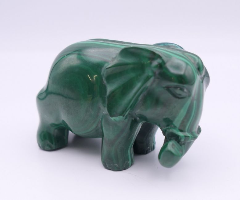A malachite model of an elephant. 6 cm long x 4 cm high.