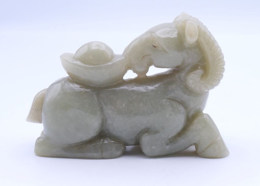 A jade carving of a goat. 8.5 cm long