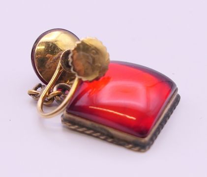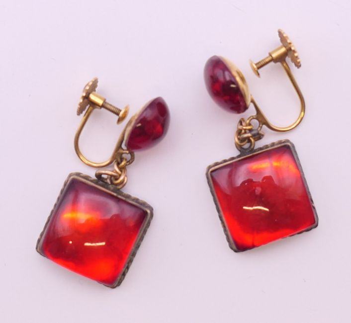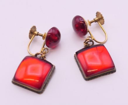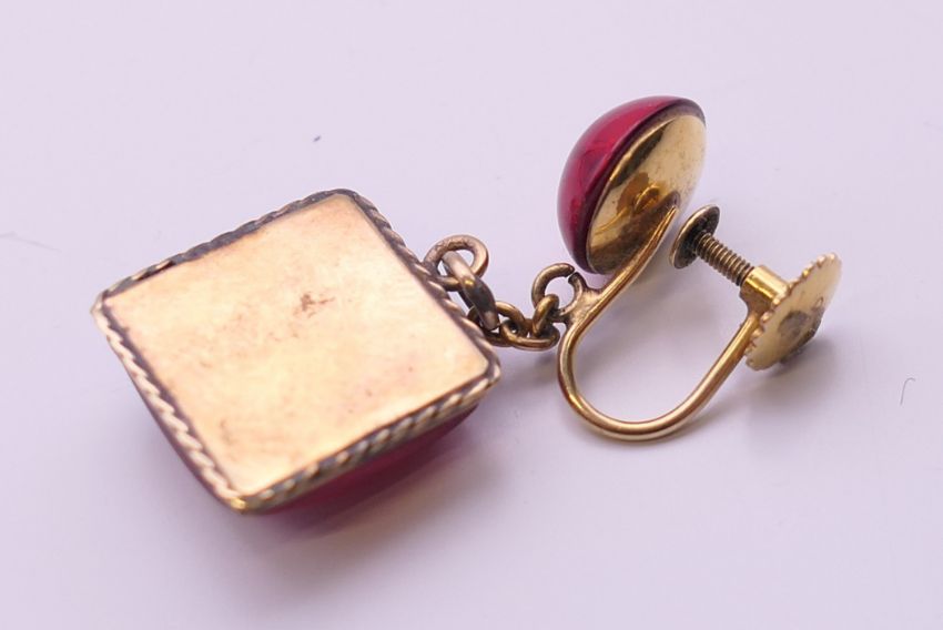 A pair of 9 ct gold drop earrings. 3.25 cm high.