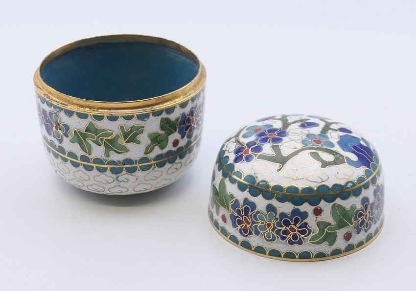 A Chinese cloisonne lidded pot. 6 cm high.