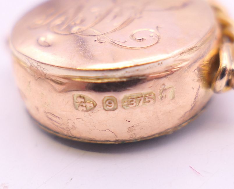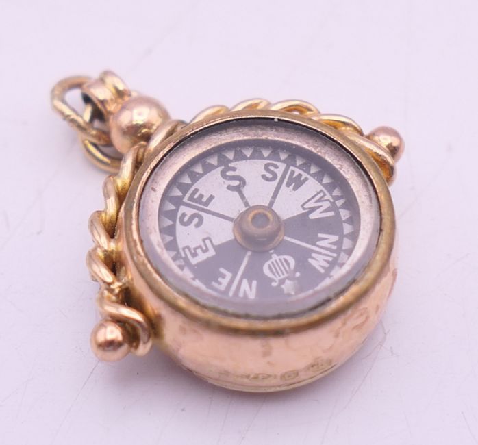 A 9 ct gold fob compass, Chester 1919. 2.5 cm high. 3.7 grammes total weight.