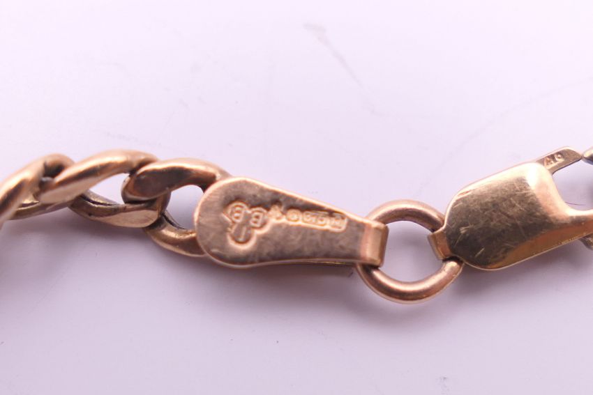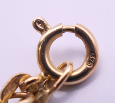 A 9 ct gold necklace and two 9 ct gold bracelets. The former 36 cm long. 14.8 grammes.
