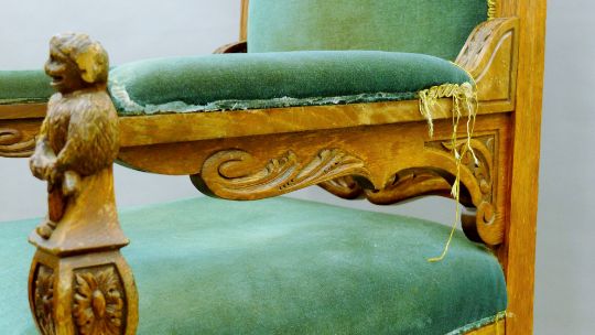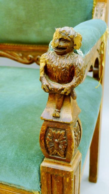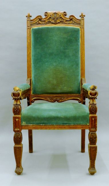 An early 20th century carved oak open armchair. 66 cm wide.