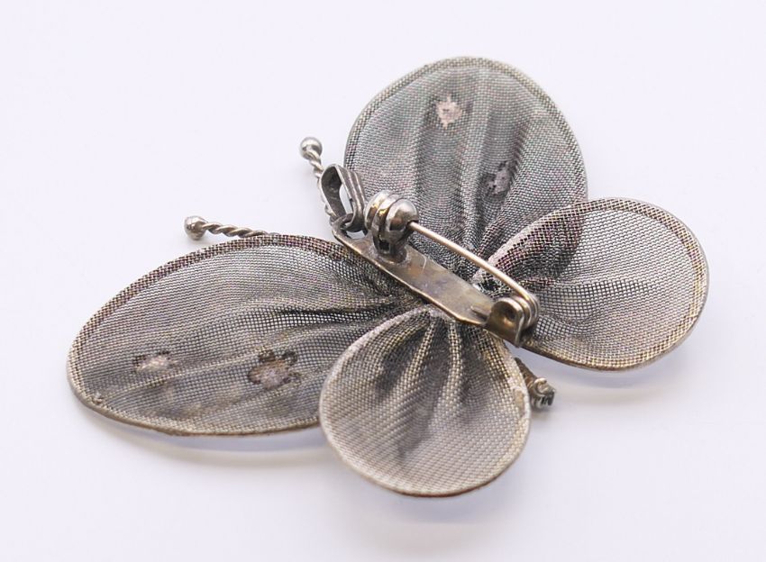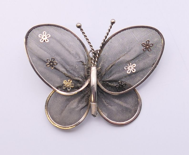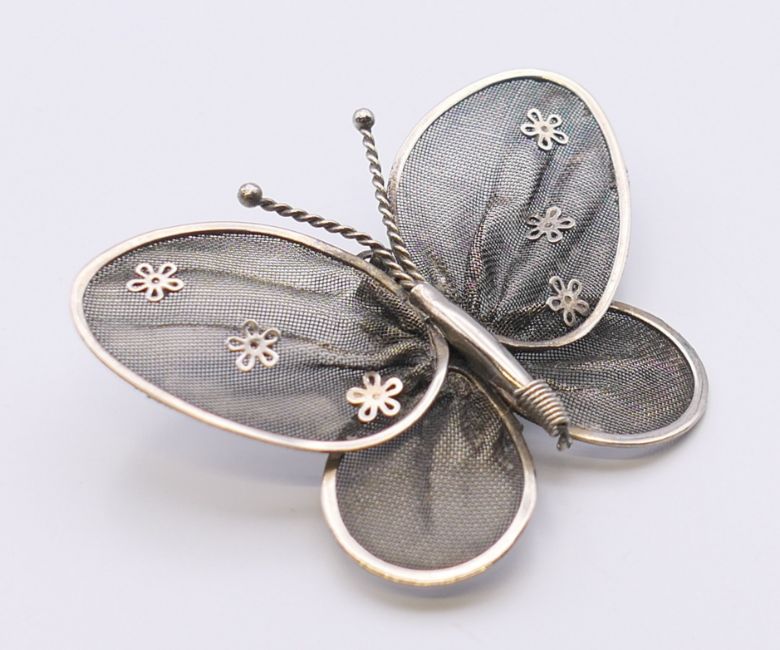 A filigree butterfly brooch. 5.5 cm wide.