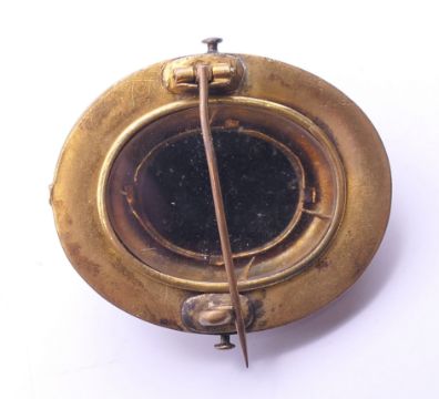 A Victorian enamel and cameo set mourning brooch. 4 cm high.