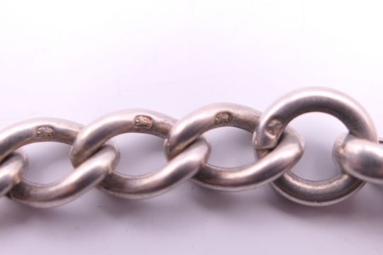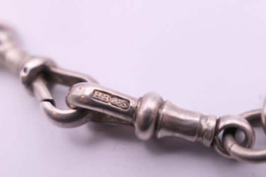 A silver watch chain. 40 cm long. 38.4 grammes.