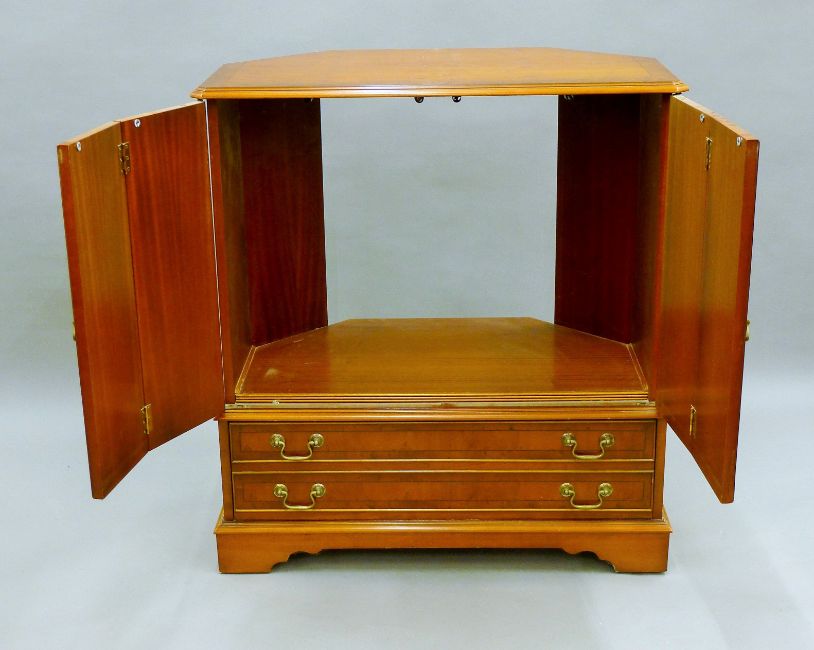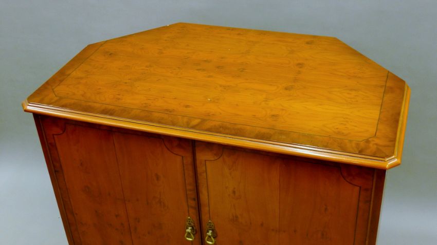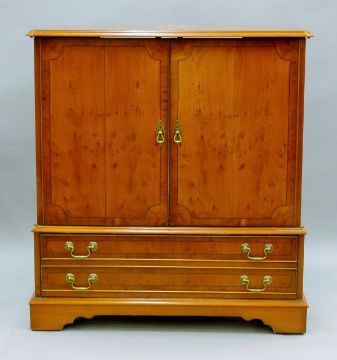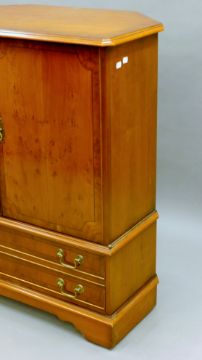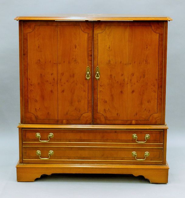 A yew wood veneerer cabinet. 91 cm wide.