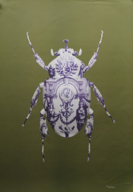 MAGNUS GJOEN British (AR), Delft Scarab, a signed limited edition print on paper (limited run of 300), produced for The Big Issue Christmas wrapping paper, signed. 50 x 70 cm.