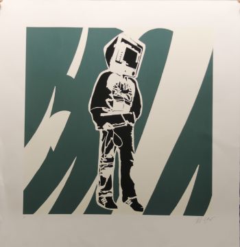 BLEK LE RAT (born 1952) French (AR), Computer Man, a signed artist's proof print on card, printed by The Black Rat Press, initialled AP and signed to the margin and bearing The Black Rate Press blind stamp. 72 x 75 cm.