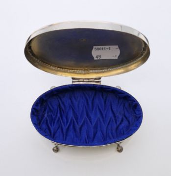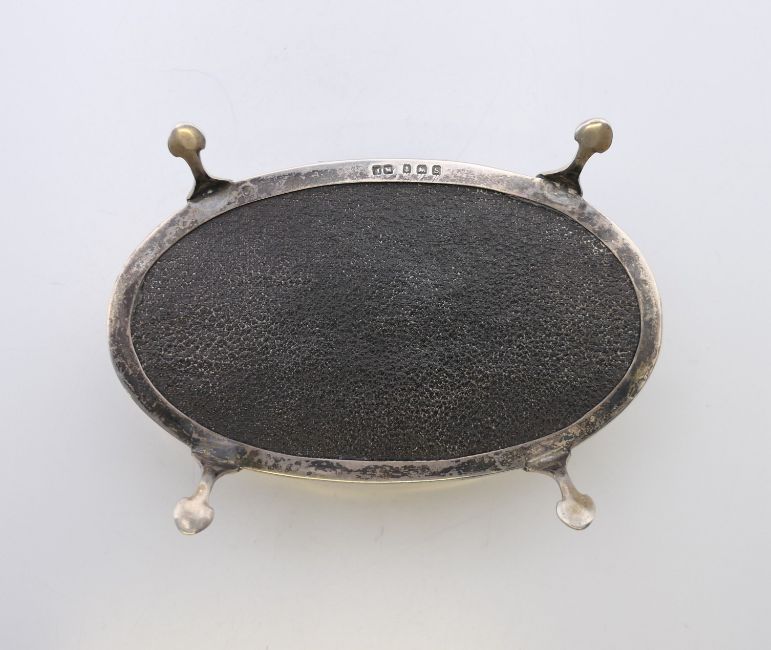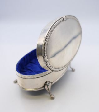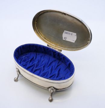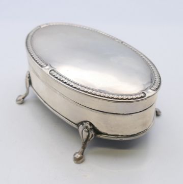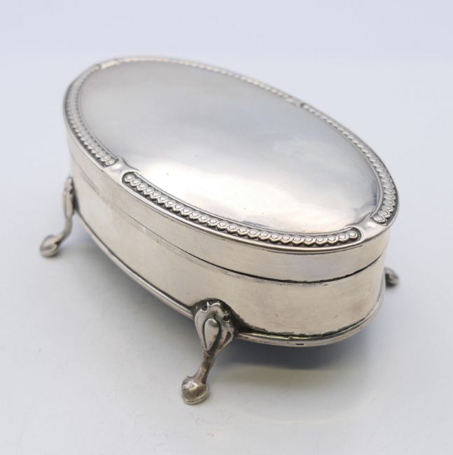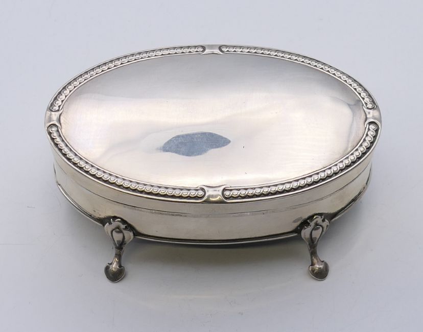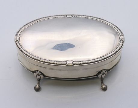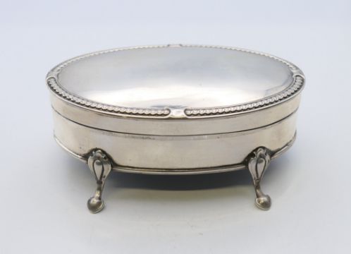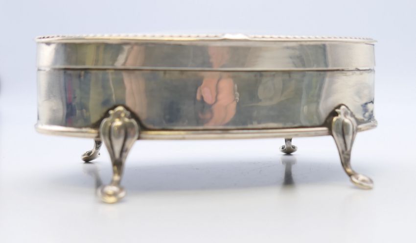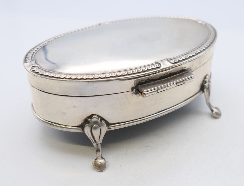A silver trinket box, hallmarked for Birmingham 1917. 11 cm x 6.5 cm.