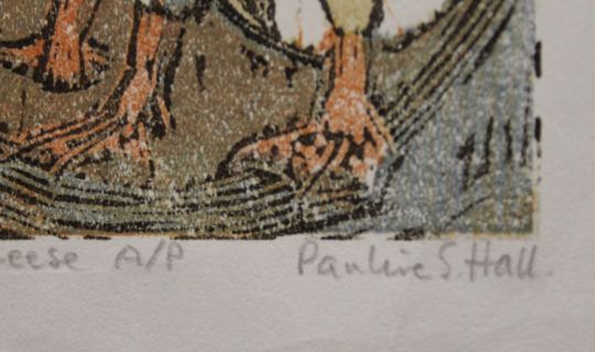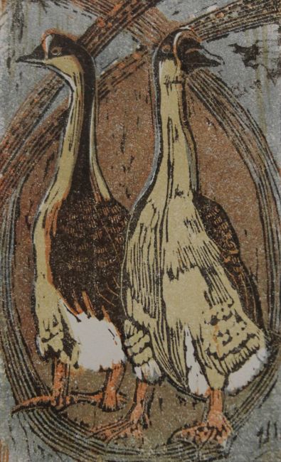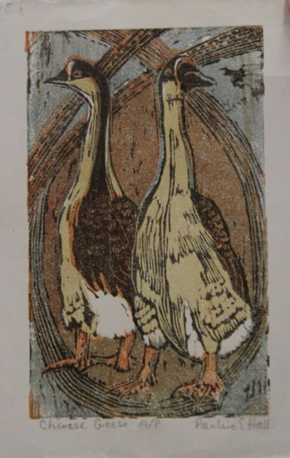 HALL, PAULINE SOPHIE (1918-2007) British (AR), Chinese Geese, woodcut on handmade paper, artist's proof, signed. 13 x 8 cm.