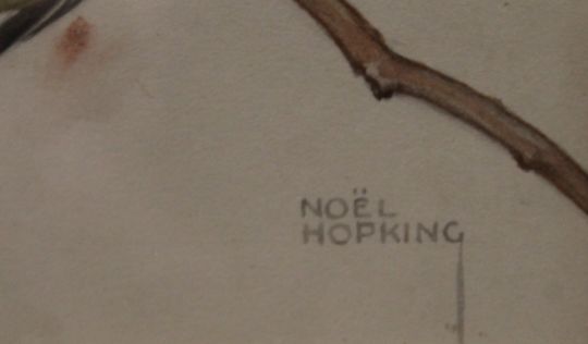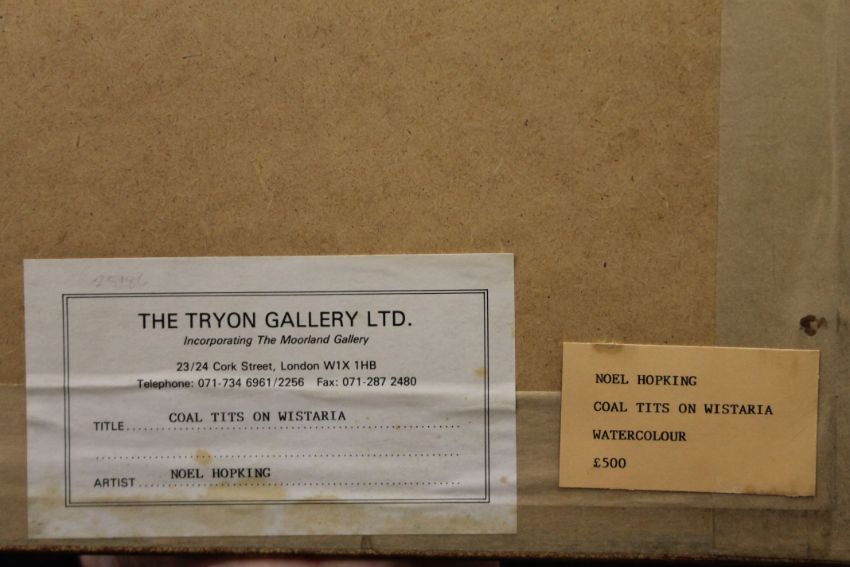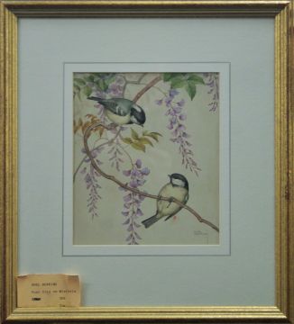 HOPKING, NOEL HUBERT (1883-1964) British (AR), Coal Tits on Wisteria, watercolour, signed, framed and glazed, a label for The Tryon Gallery to the reverse. 20 x 17 cm.