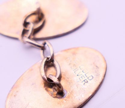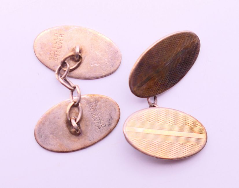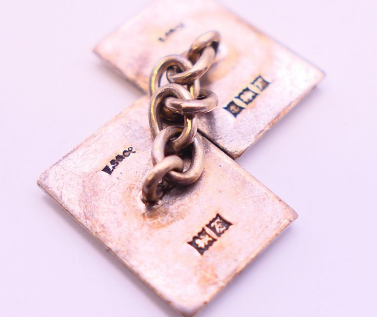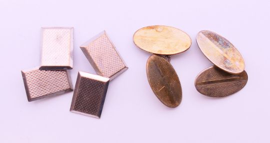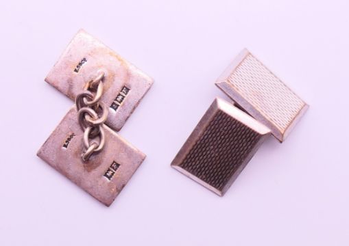 Two pairs of silver cufflinks. Oval pair 2 cm wide, rectangular pair 1.5 cm x 1 cm.