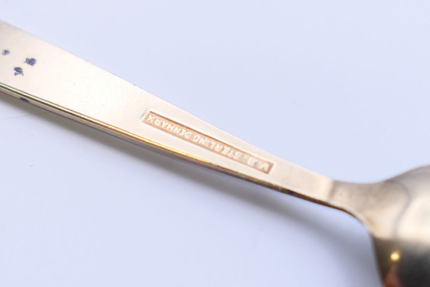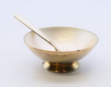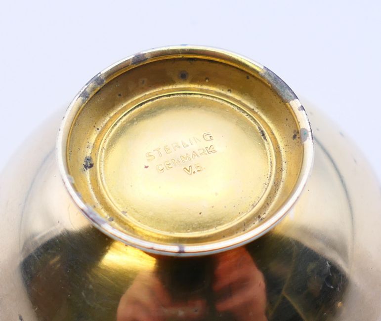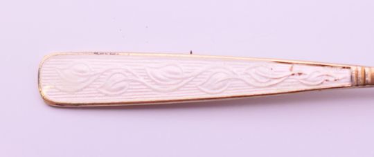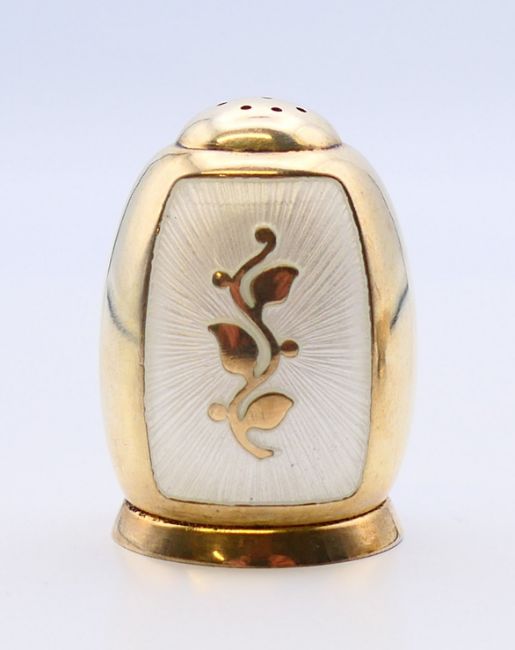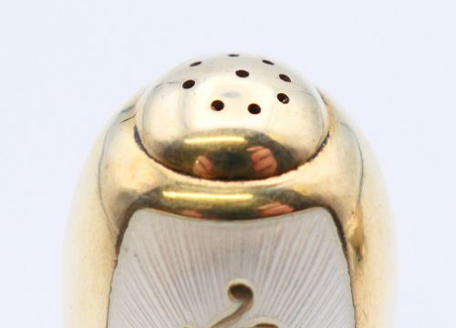 Volmer Bahner (Danish), an enamel and silver salt spoon and pepper. The latter 3.5 cm high.