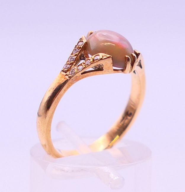 A 9 ct gold and black opal ring, certified 2.86 . Ring size N/O.