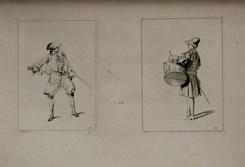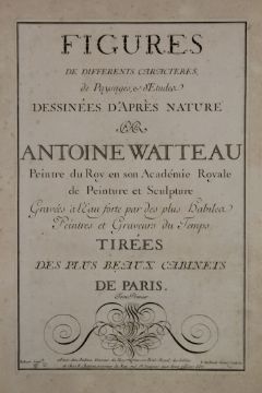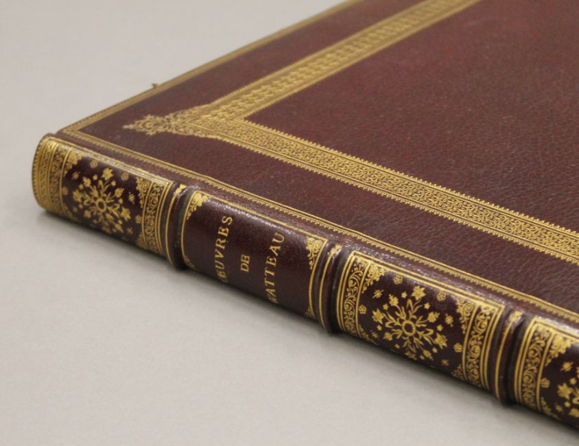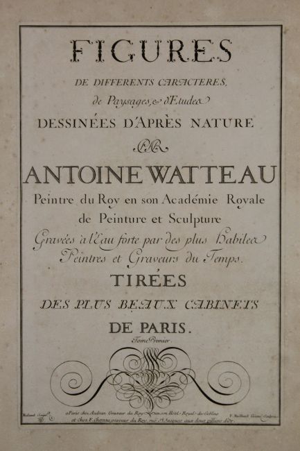 Watteau (Jean Antione), Figures de Differents Caracteres de Paysages et d'Etudes, Dessinees d'apres Nature, volume I with portrait and 132 illustrations on 101 plates, 9pp text, finely bound in later full plum morocco, decorated in gilt, fine large uncut copy, Paris 1726.