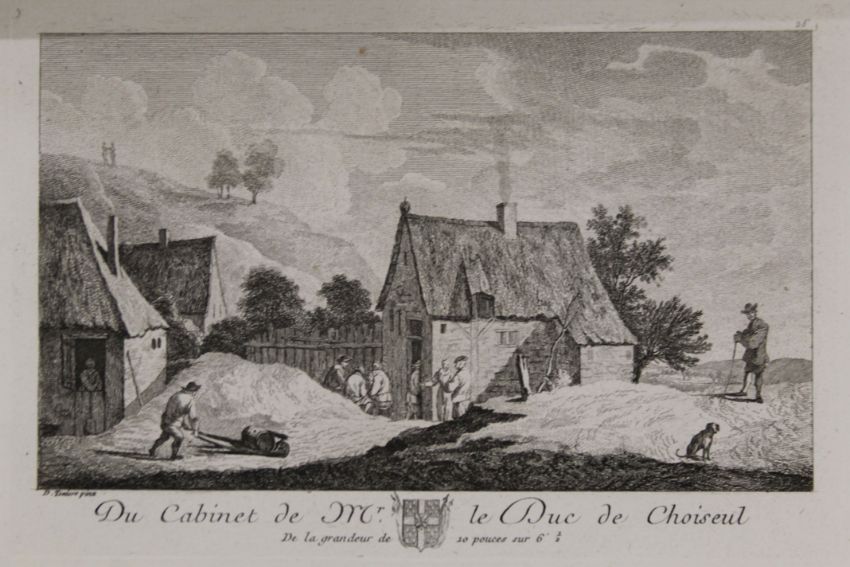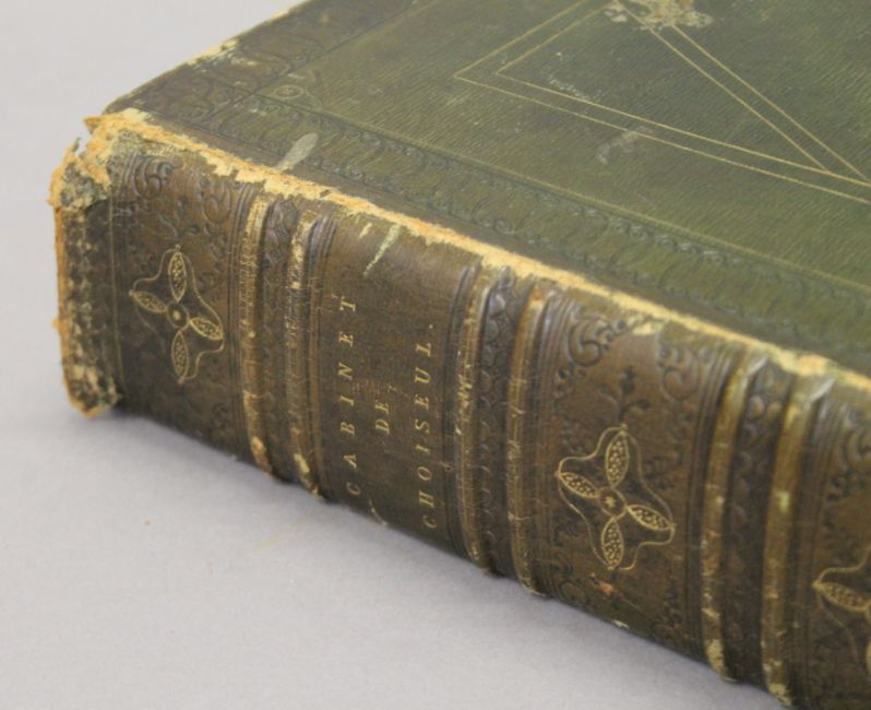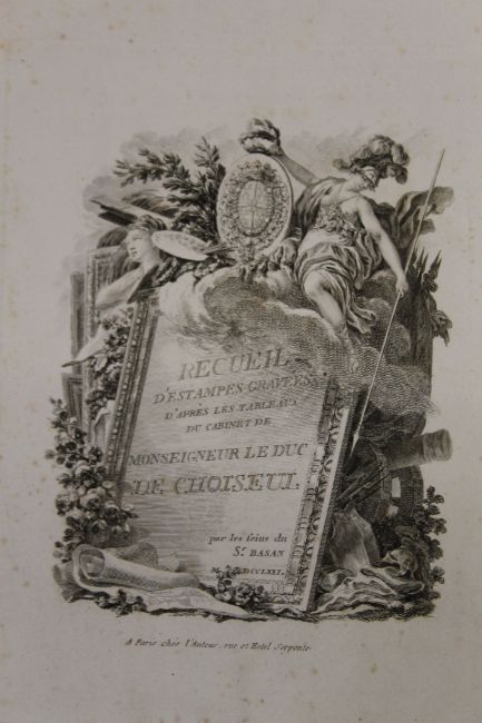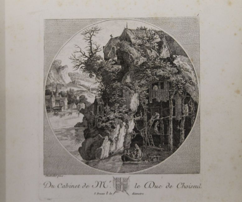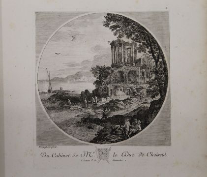 Choiseul (Duc de), Recueil D'Estampes Gravees D'Apres Les Tableaux du Cabinet de Monseigneur le duc de Choiseul, frontis detached and frayed at edges, engraved title pp 12 and 123 plates, contemporary green morocco, edges rubbed, bottom of front joint cracked, printed for the author, Paris, 1781.