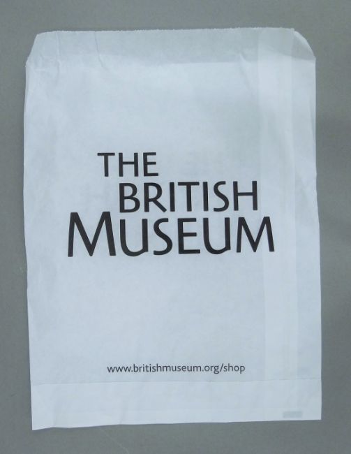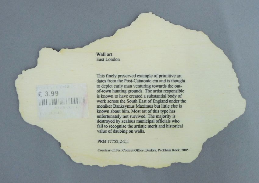 BANKSY (born 1974) British (AR), Peckham Rock, print on wood together with British Museum paper bag. 12 x 15 cm.