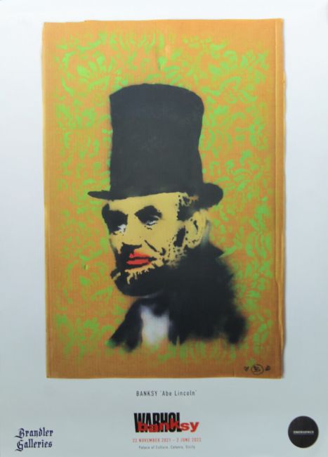 BANKSY, After (born 1974) British, Abe Lincoln, a printed poster to promote the Warhol Banksy Exhibition held at the Palace of Culture, Catania, Sicily. 70 x 50 cm.