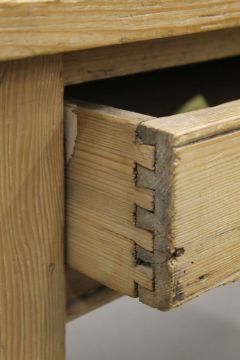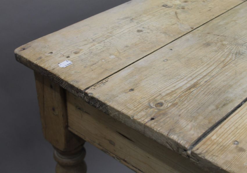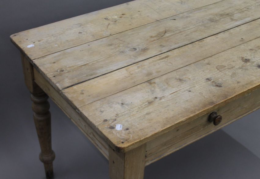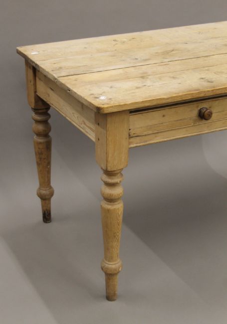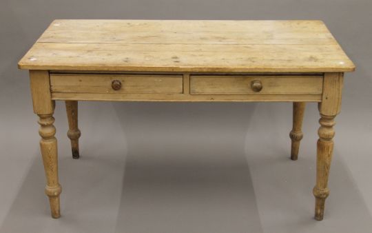 A Victorian pine two-drawer kitchen table. 136 cm long.