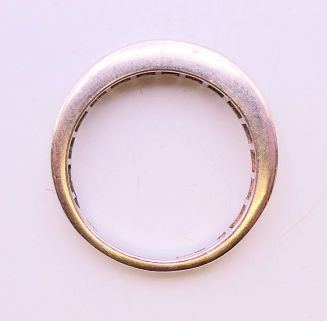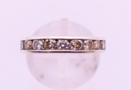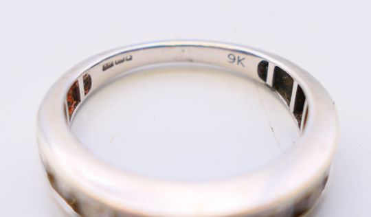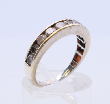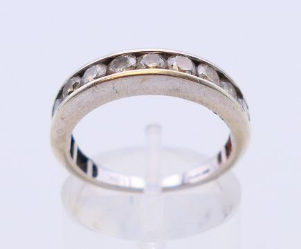 A 9 ct white gold half hoop eternity ring. Ring size M/N.