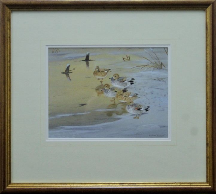 ROBJENT, RICHARD (born 1937) British (AR), Gadwall Frozen Out, watercolour, signed, framed and glazed. 19 cm x 25 cm.