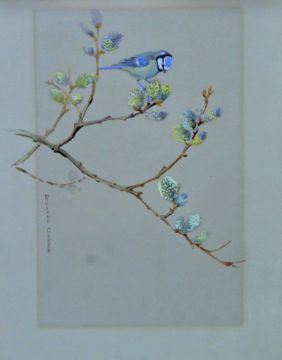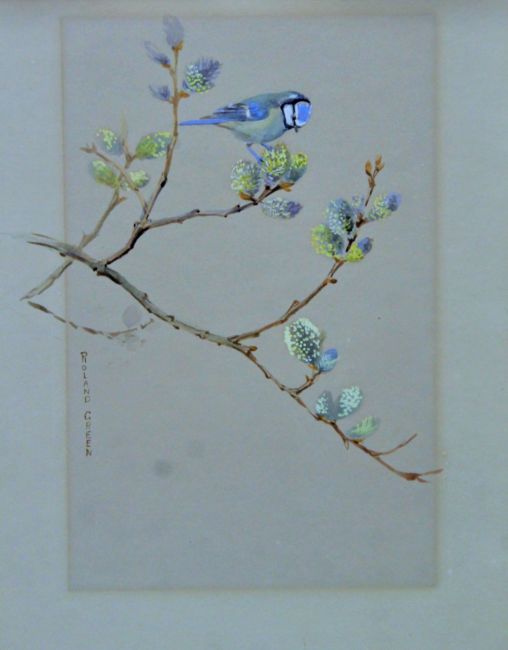GREEN, ROLAND (1896-1972) British (AR), Blue Tit, watercolour, signed. 27 cm x 17 cm.