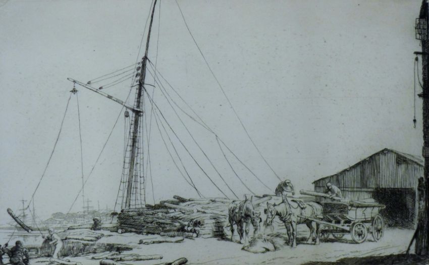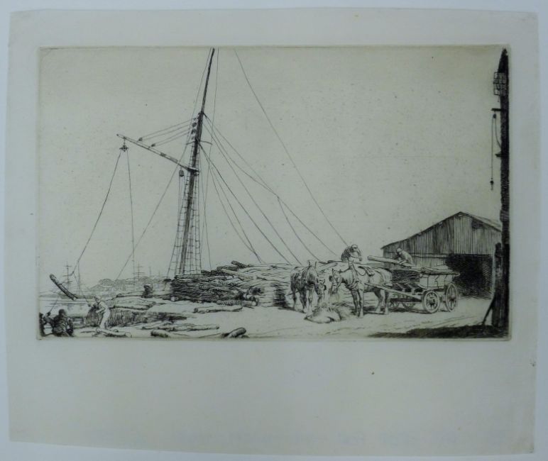 SOPER, GEORGE (1870-1942) British, Pit Props for the Trenches, etching. 12.5 cm x 20 cm.