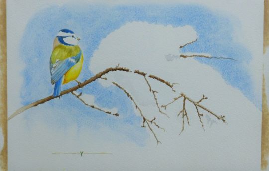 HAMPTON, MICHAEL (born 1937) British (AR), Blue Tit, watercolour. 18 cm x 26 cm.