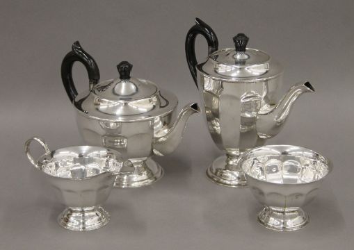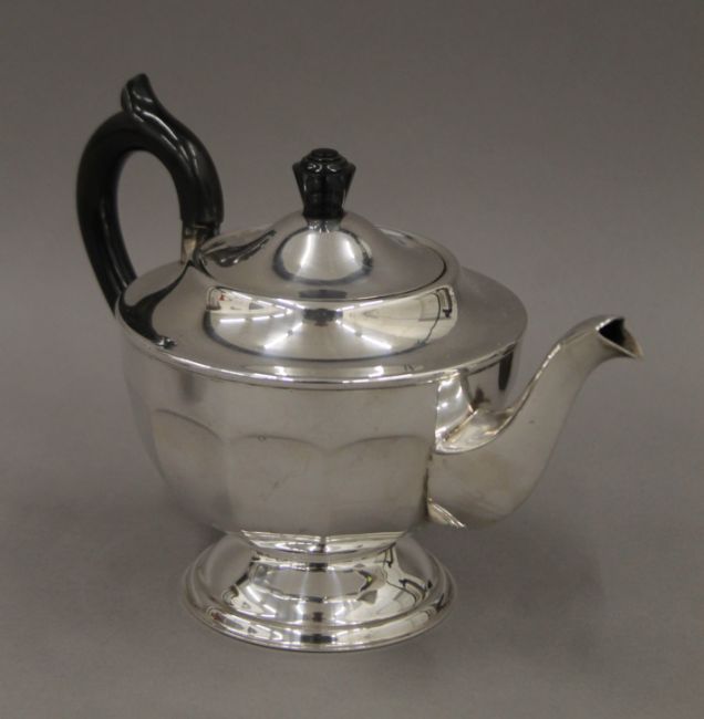 A Viners four-piece silver-plated tea set. The teapot 14 cm high.