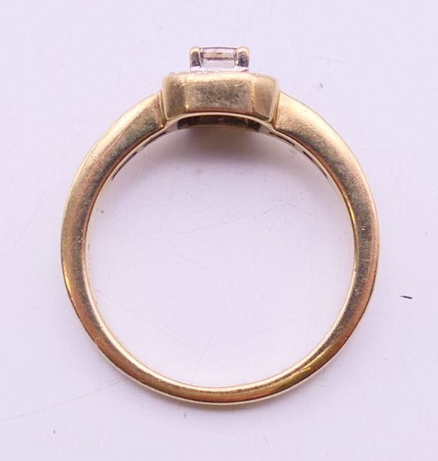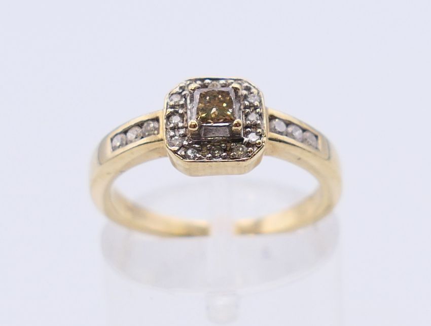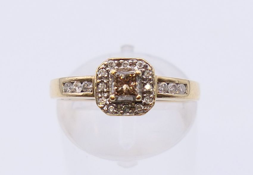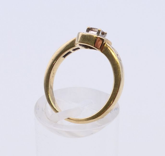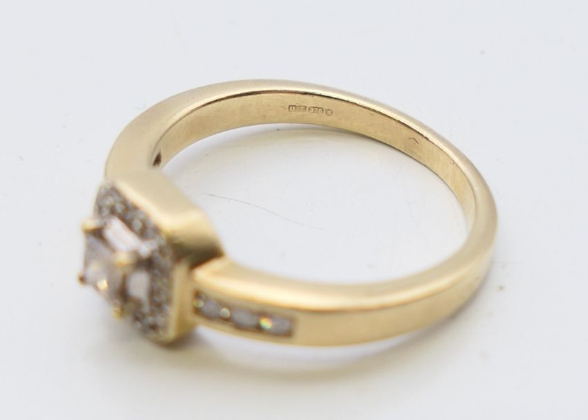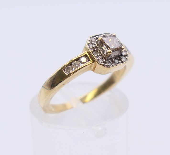 A 9 K gold diamond set ring. Ring size L.