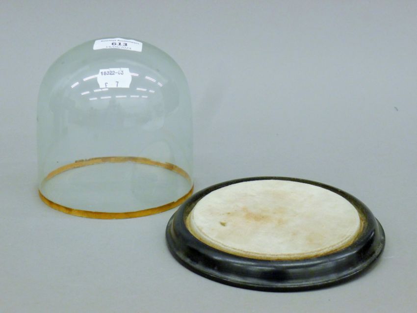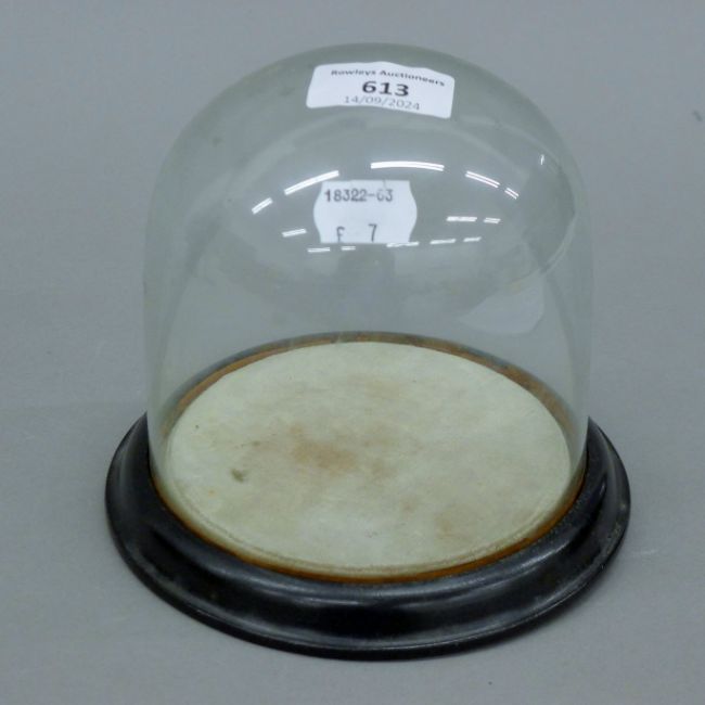 A small glass dome on an ebonised plinth base. 14.5 cm high.