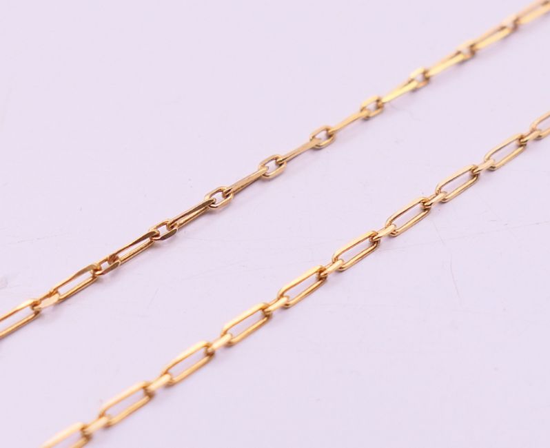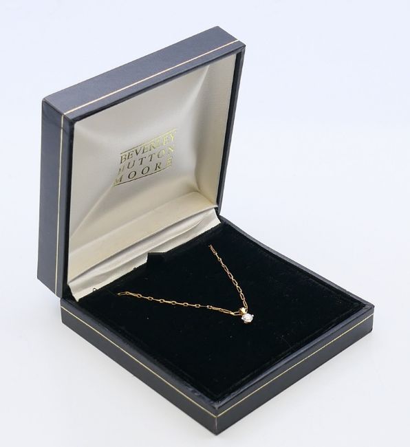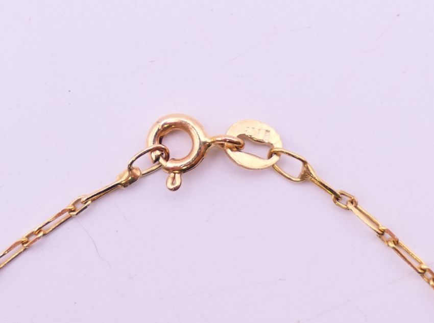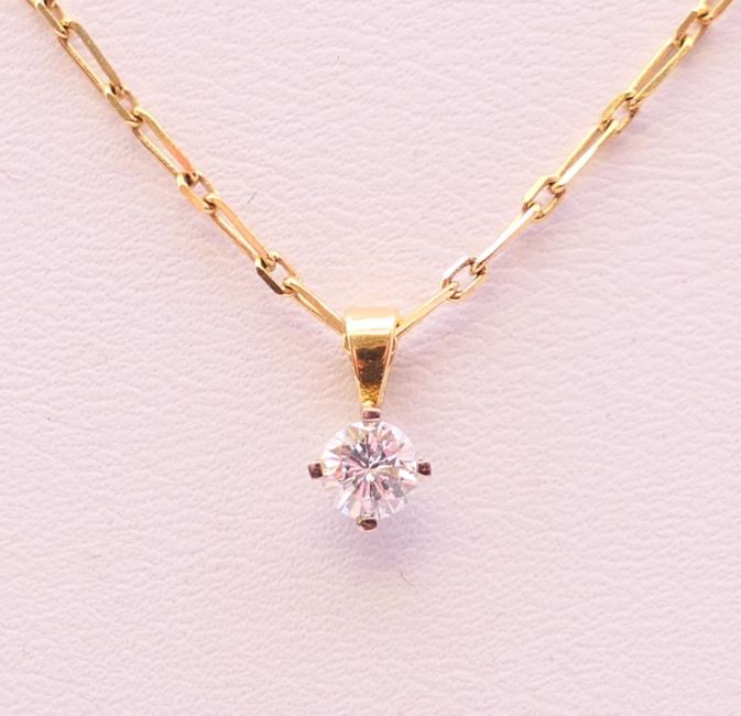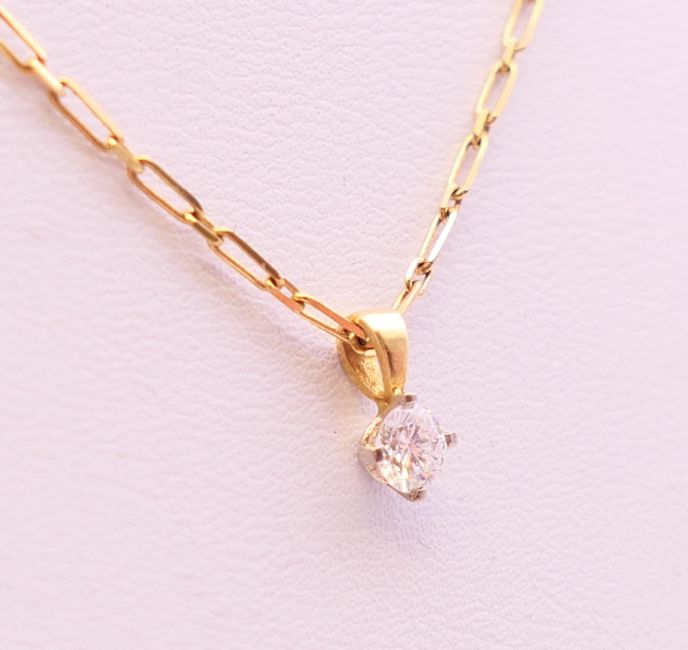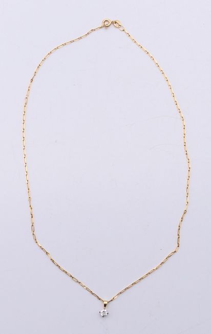 A diamond pendant (0.25 carat) on a gold, possibly 18 ct, chain. The chain 40 cm long. 2 grammes total weight.