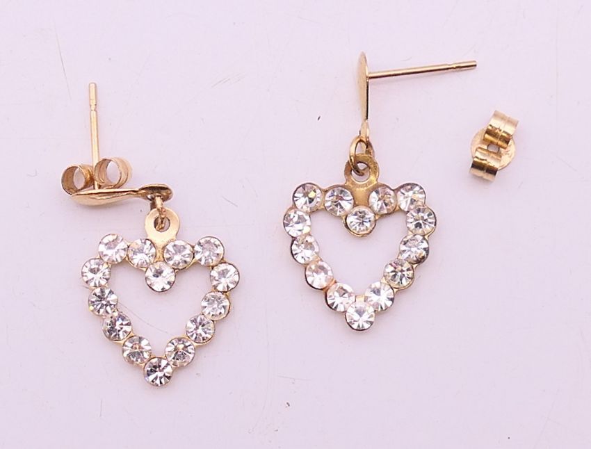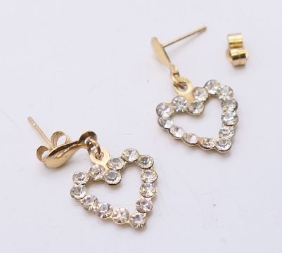 A pair of possibly 9 ct gold heart-shaped earrings. 2 cm high.