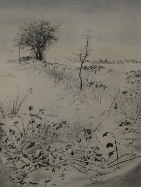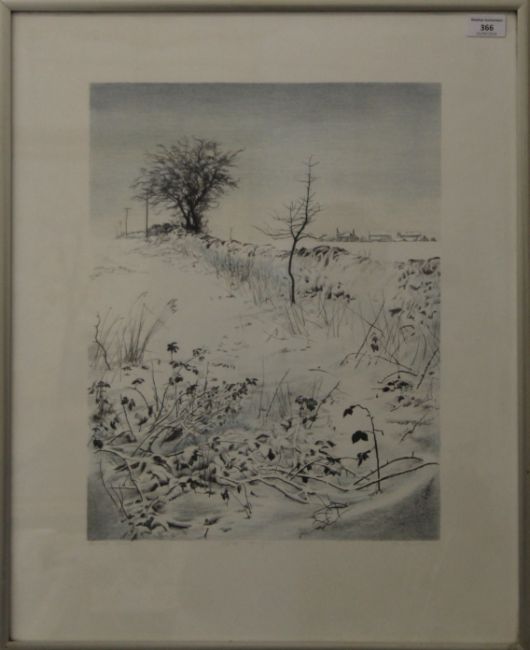 Drystone Wall and Grasses in a Winter Landscape, artist's proof, indistinctly signed and titled, framed and glazed. 51.5 x 63.5 cm overall.