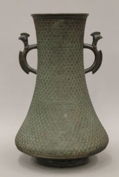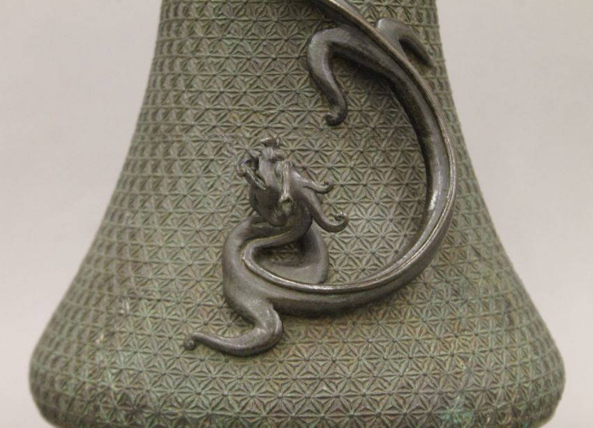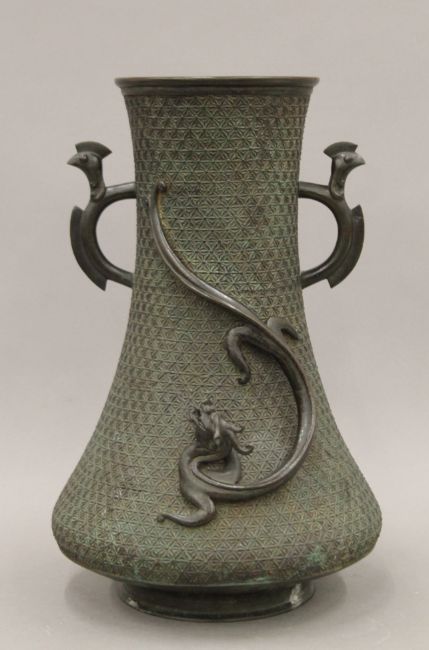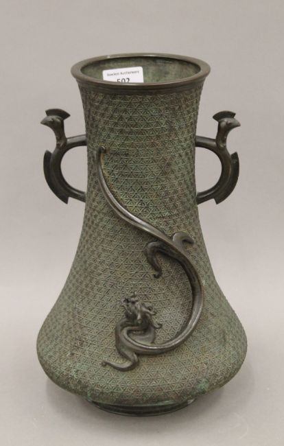 A 19th century Japanese bronze vase decorated with dragons. 30 cm high.