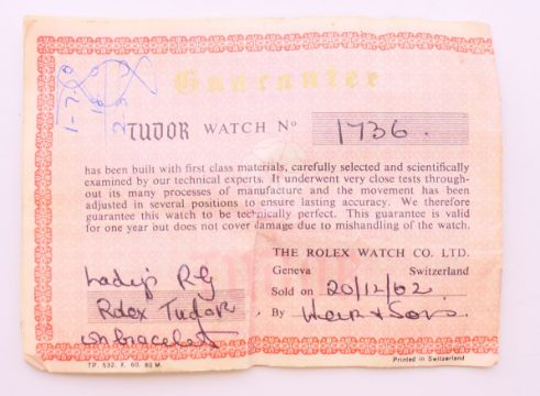 A Tudor by Rolex wristwatch, together with guarantee booklet. 1.8 cm wide.
