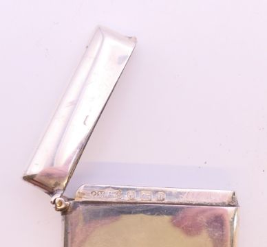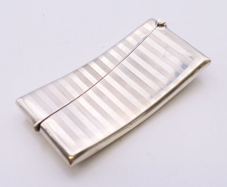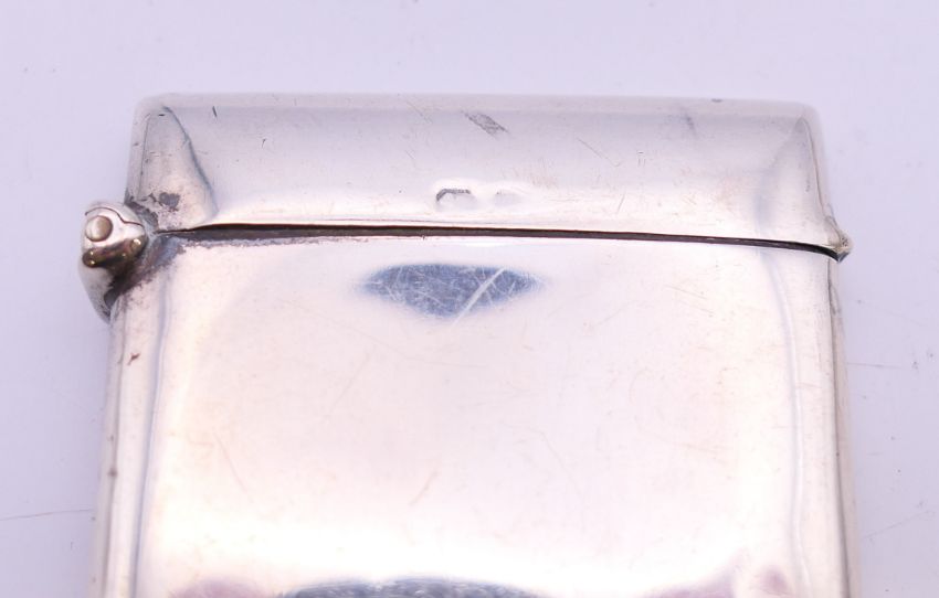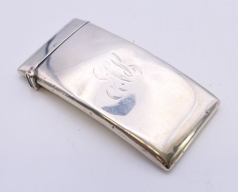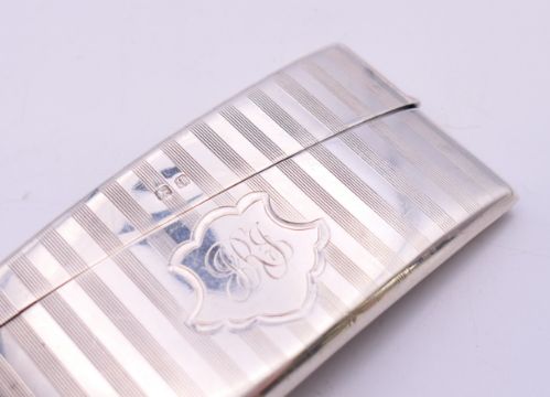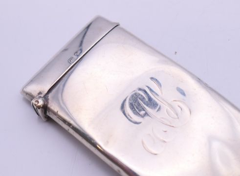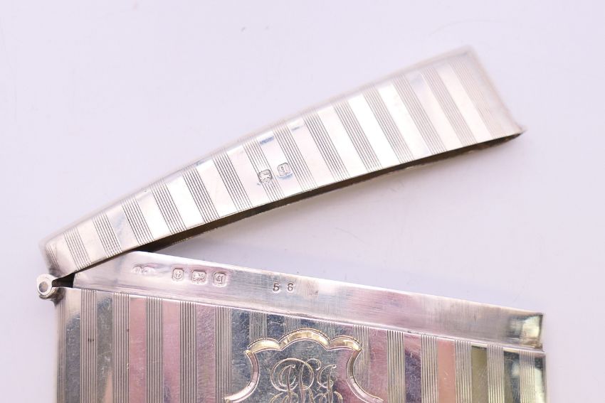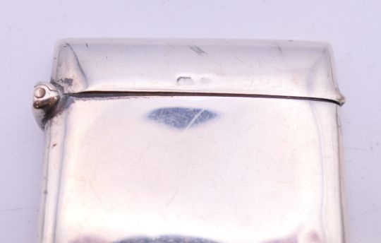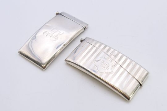Two silver visiting card cases. The largest 8 cm wide. 81.3 grammes.