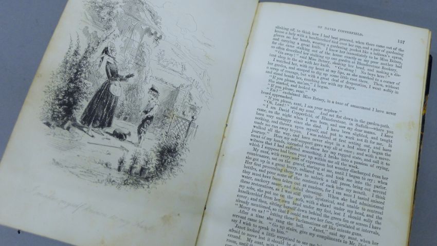 Dickens (Charles), The Personal History of David Copperfield, with illustrations by H K Browne, published by Bradbury & Evans, London, 1850, first edition, leather bound with marbled boards.Note: 'screamed' for 'screwed' error present on p. 132, single quote mark on page 369.
