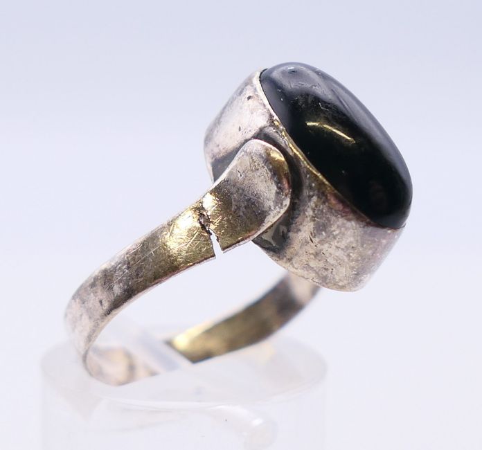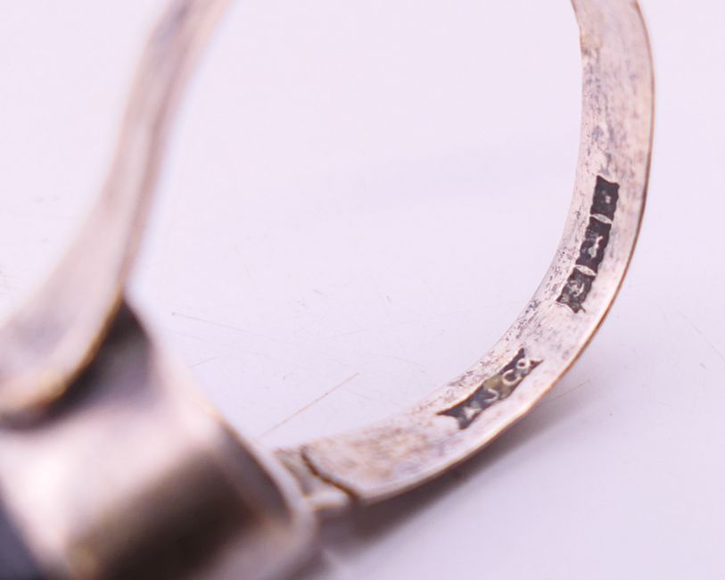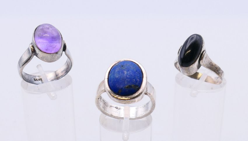 Three silver cabochon set rings. Ring sizes O,P and Q.