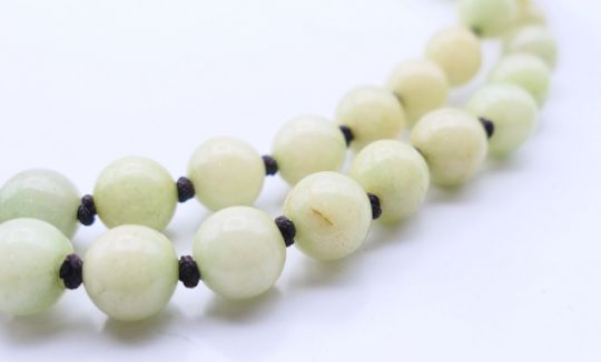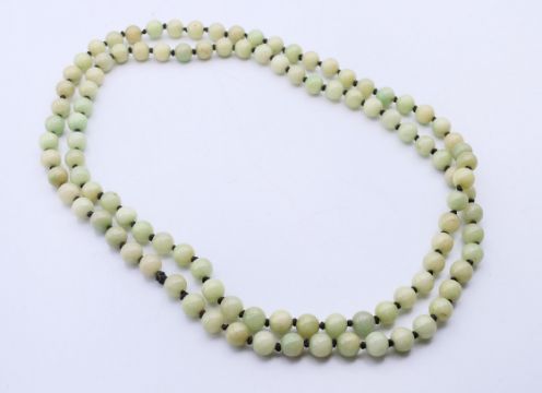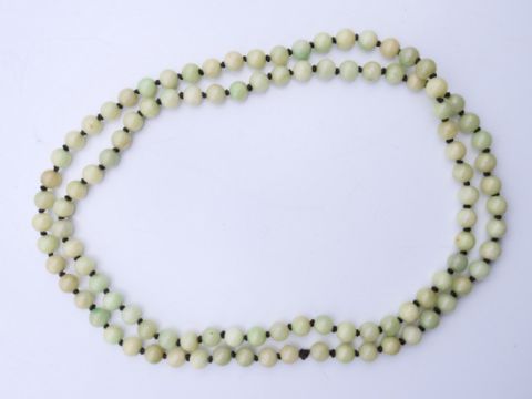 A string of celadon jade beads. 120 cm long.