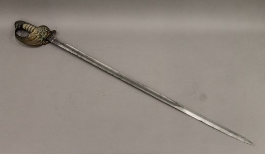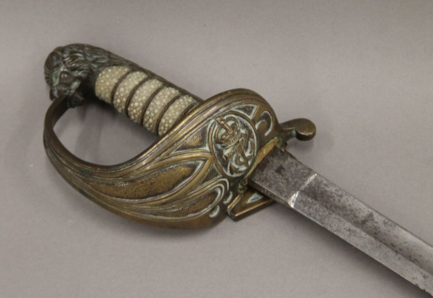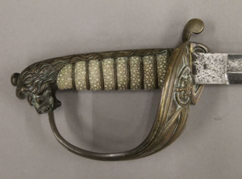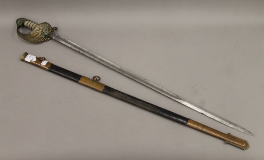 A 19th century naval sword with shagreen handle. 95 cm long.